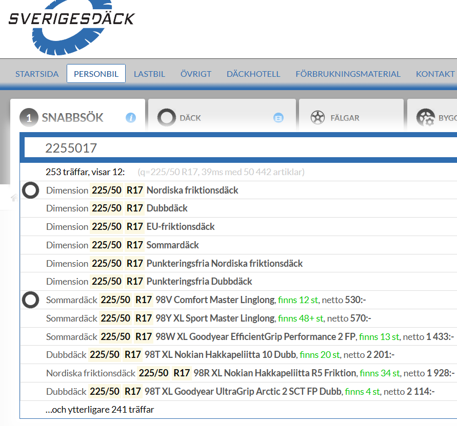 Vi har skalat av startsidan, men den gamla vanliga menyn för personbilsdäck finns under Personbil.